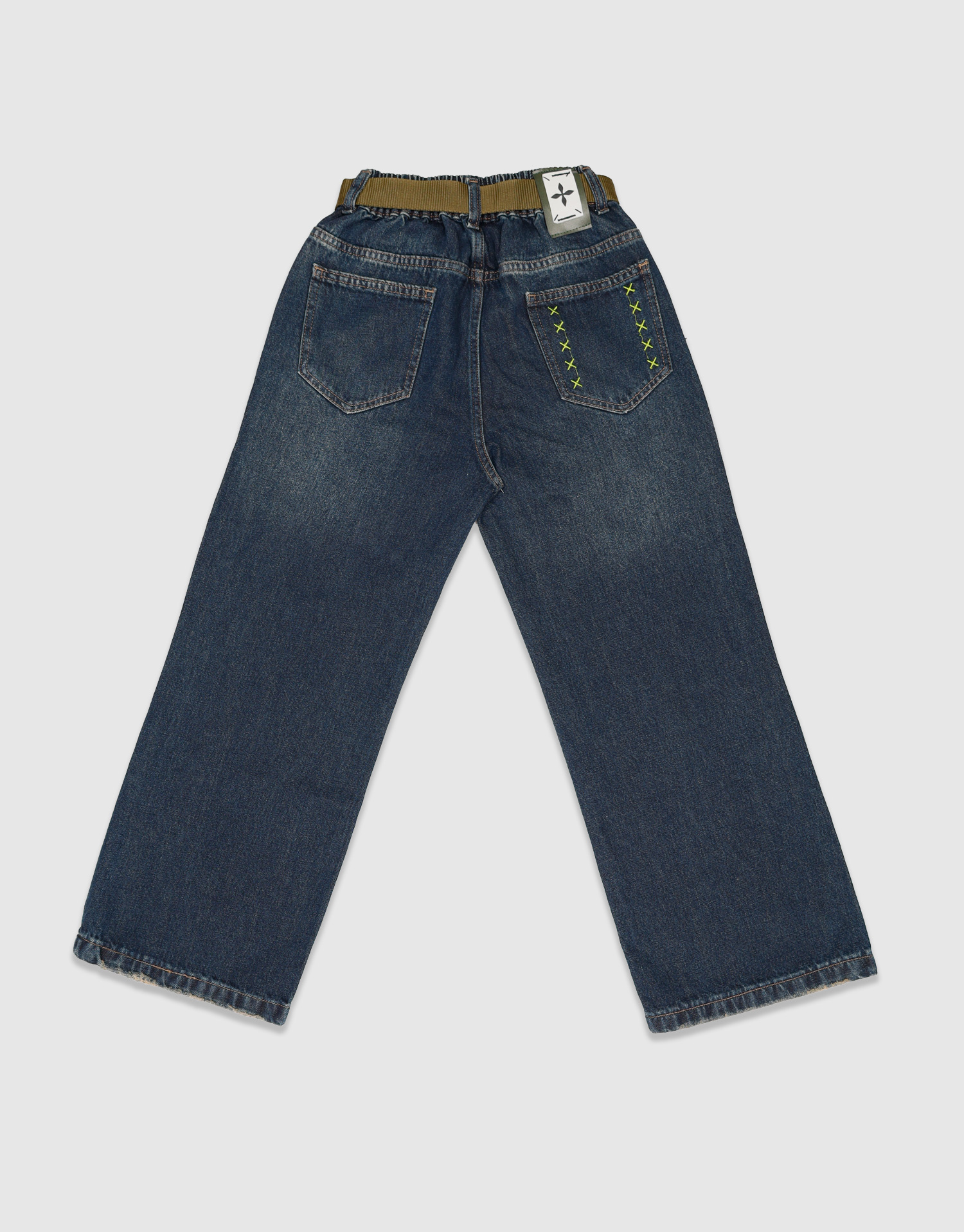 شلوار جین بگی کمرکش آبی کثیف بچگانه